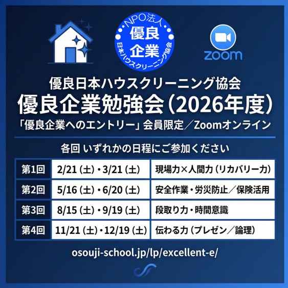 ※JHAスクール受講・日本ハウスクリーニング協会会員であることが最低条件となります。